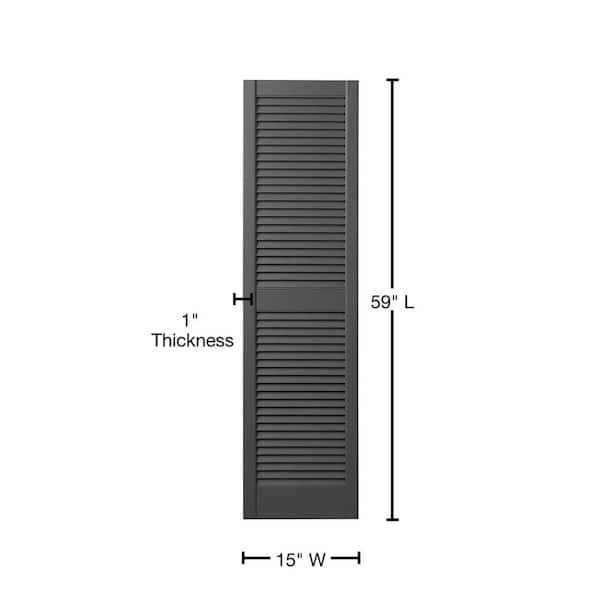 15 in. x 59 in. Open Louvered Polypropylene Shutters Pair in Spanish Moss