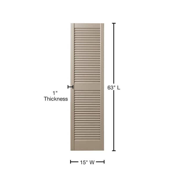 15 in. x 63 in. Open Louvered Polypropylene Shutters Pair in Pebblestone Clay