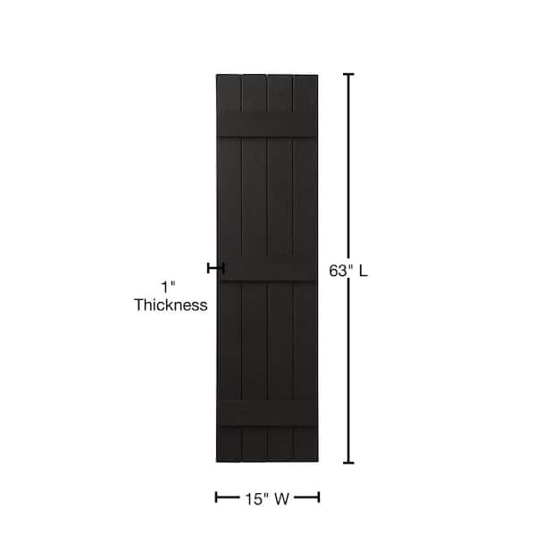 15 in. x 63 in. Polypropylene 4-Board Closed Board and Batten Shutters Pair in Peppercorn