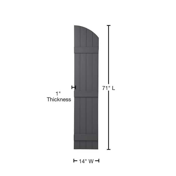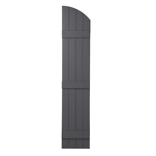 15 in. x 71 in. Polypropylene Plastic Arch Top Closed Board and Batten Shutters Pair in Gray