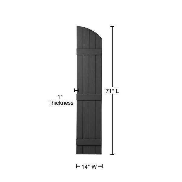 15 in. x 71 in. Polypropylene Plastic Arch Top Closed Board and Batten Shutters Pair in Spanish Moss