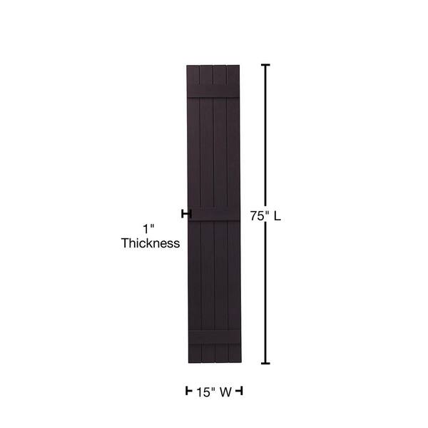 15 in. x 75 in. Polypropylene 4-Board Closed Board and Batten Shutters Pair in Dark Berry