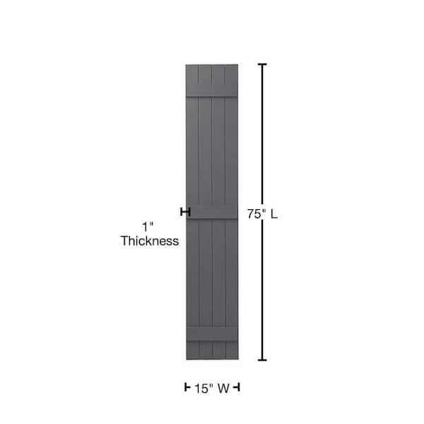 15 in. x 75 in. Polypropylene 4-Board Closed Board and Batten Shutters Pair in Gray
