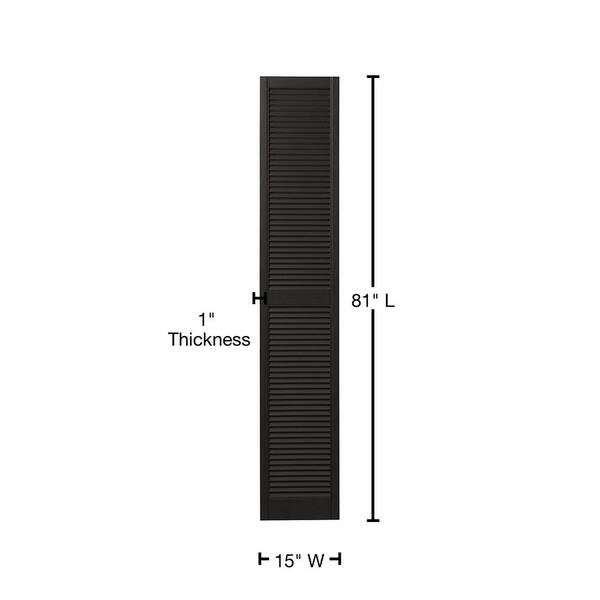 15 in. x 81 in. Open Louvered Polypropylene Shutters Pair in Peppercorn