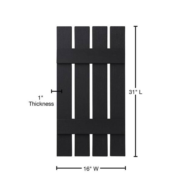 16 in. x 31 in. Polypropylene 4-Board Open Board and Batten Shutters Pair in Black