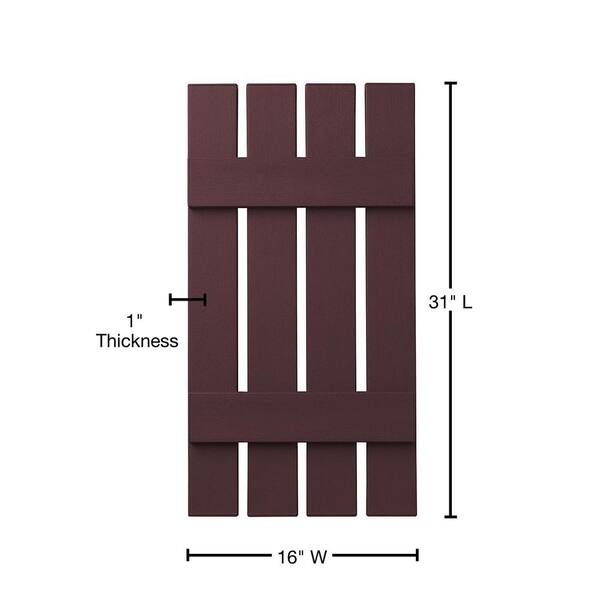 16 in. x 31 in. Polypropylene 4-Board Open Board and Batten Shutters Pair in Vineyard Red