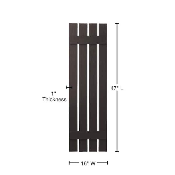 16 in. x 47 in. Polypropylene Plastic 4-Board Open Board and Batten Shutters Pair in Brown