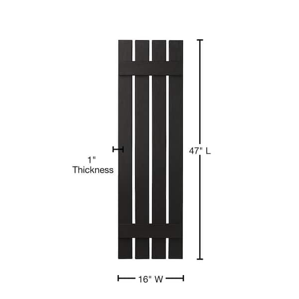 16 in. x 47 in. Polypropylene Plastic 4-Board Open Board and Batten Shutters Pair in Peppercorn