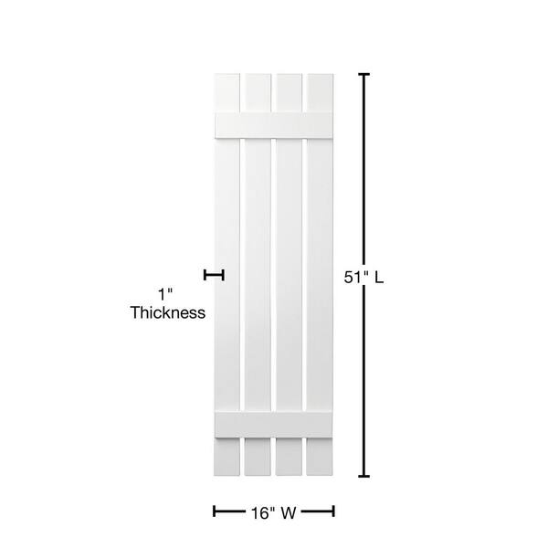 16 in. x 51 in. Polypropylene Plastic 4-Board Open Board and Batten Shutters Pair in White