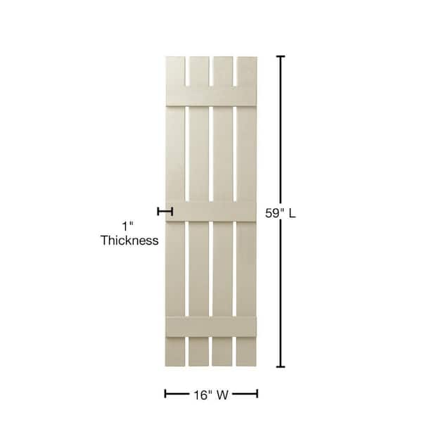 16 in. x 59 in. Polypropylene Plastic 4-Board Open Board and Batten Shutters Pair in Sand Dollar