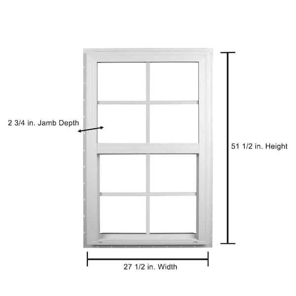 27.5 in. x 51.5 in. 500 Series White Vinyl Single Hung Window with Grilles and HPSC Glass, Screen Included