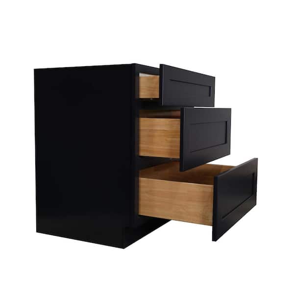 Shaker Assembled 15 in. x 34.5 in. x 24 in. Drawer Base Cabinet with 3-Drawers in Charcoal Black