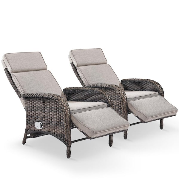 2-Pack Brown Wicker Outdoor Pneumatic Pump Gravity Adjustable Recliner for Patio with CushionGuard Beige Cushions