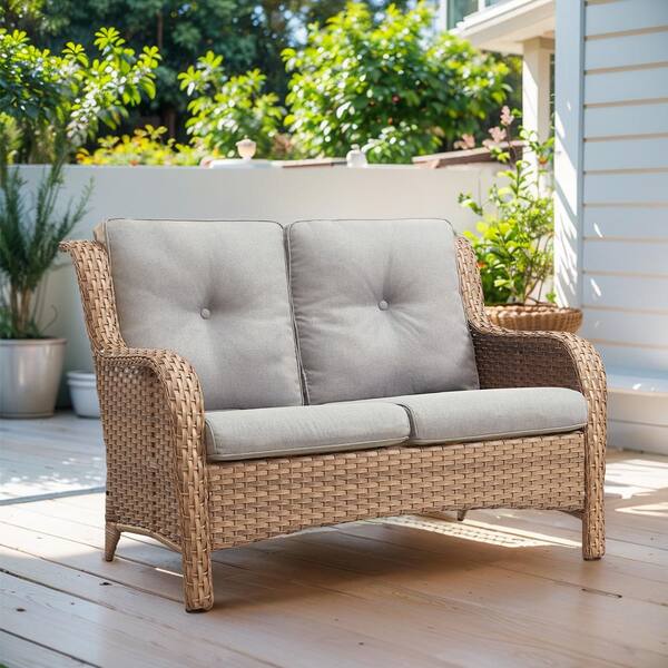 2-Seat Wicker Outdoor Loveseat Sofa Patio with CushionGuard Cushions Yellow/Beige