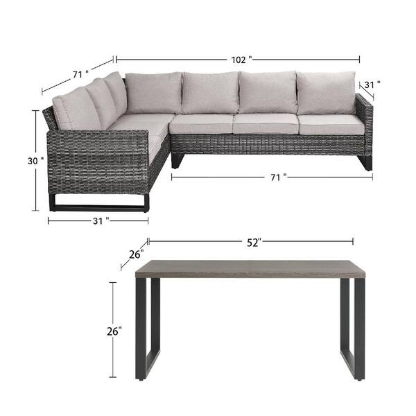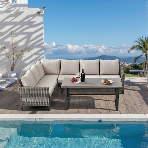 3-Piece Rattan Gray Wicker Patio Conversation Outdoor Seating Set with Beige Cushions