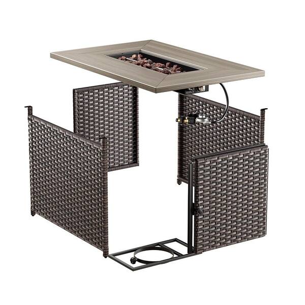 5-Piece Curved Armrest Rattan Wicker Patio Conversation Outdoor Corner Sofa Seating Set with Cushions (Brown/Gray)