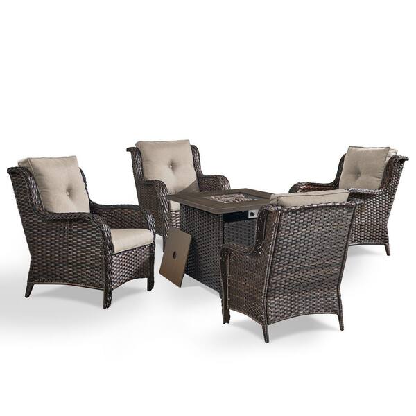5 Piece Wicker Patio Chairs for 4 with 30 in. Gas Propane Fire Pit Table Outdoor Chair Sets
