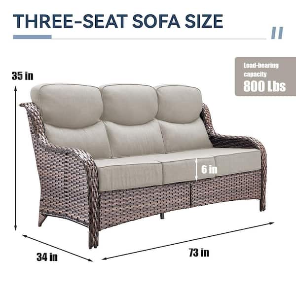 6 in Thicken 3-Seat Wicker Outdoor Couch Patio Sofa with Beige Cushion