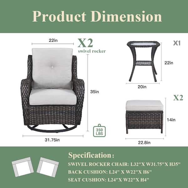 Brown 5-Piece Wicker Patio Conversation Deep Seating Set and Ottoman with Beige Cushions