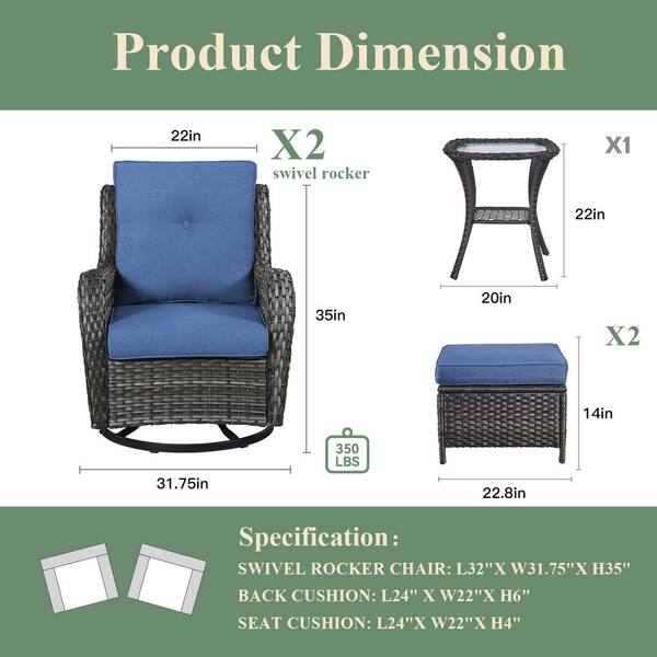 Brown 5-Piece Wicker Patio Conversation Deep Seating Set and Ottoman with Blue Cushions