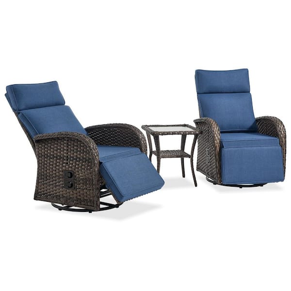Comfort Collection 3-Piece Wicker Versatile Pneumatic Swivel Outdoor Rocking Chair with CushionGuard Blue Cushions