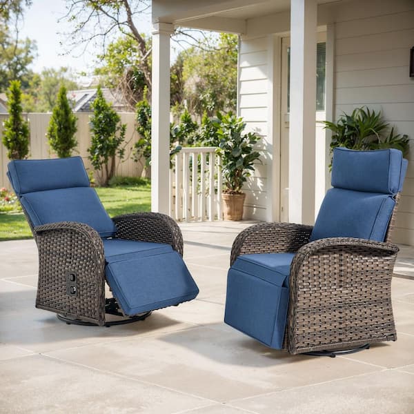 Comfort Series Brown Wicker Outdoor Versatile Pneumatic Swivel Lounge Chair for Patio with CushionGuard Blue Cushions