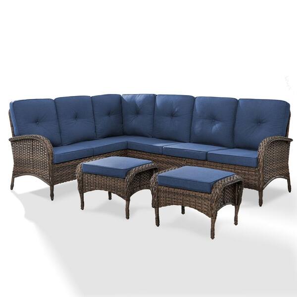 Flat Armrest Series Brown 3-Piece Wicker Patio Conversation Seating Set with CushionGuard Blue Cushions