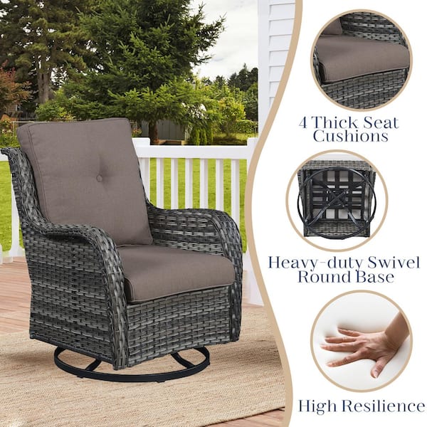 Gray 3-Piece Wicker Patio Conversation Deep Seating Set with Gray Cushions All-Weather Swivel Rocking Chairs