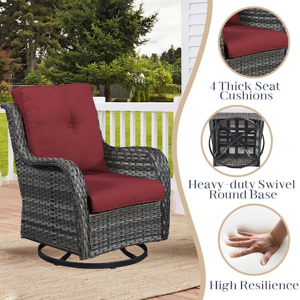 Gray 3-Piece Wicker Patio Conversation Deep Seating Set with Gray Cushions All-Weather Swivel Rocking Chairs