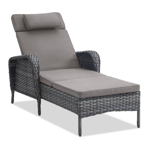 Gray Wicker Outdoor Folding Chaise Lounge Chair Fully Flat for Patio with CushionGuard Gray Seat Back Cushion