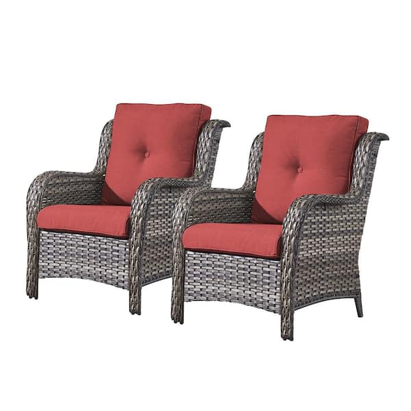 Gray Wicker Outdoor Patio Lounge Chair with CushionGuard Red Cushions (2-Pack)
