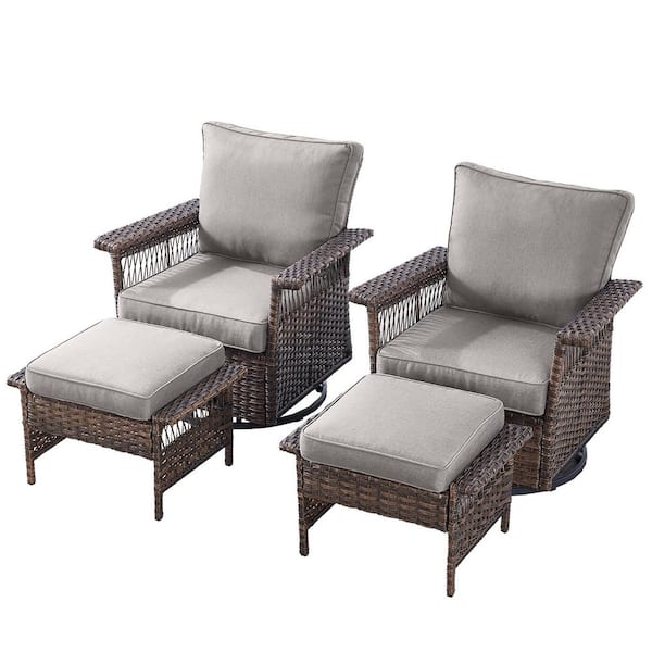 Seagull Collection 4-Piece Wicker Patio Conversation Seating Set and Ottoman with Gray Cushions