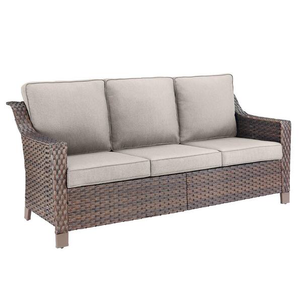 Skinny Guy Series 3-Seat Brown Wicker Outdoor Patio Sofa Couch with Cushion Guard Beige Cushions