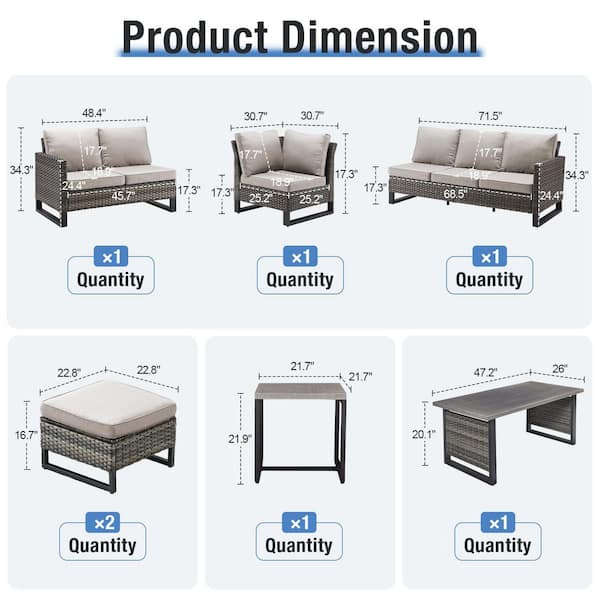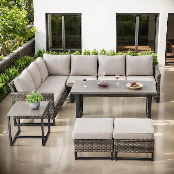U-Series 7-Piece Outdoor Gray Wicker Sofa PE Rattan Wicker Patio Conversation Set with Cushion Guard Cushions (Beige)