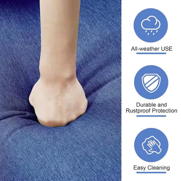 Wicker Gray Beige Outdoor Patio Flat Handrail Lounge Chair with CushionGuard Cushions in Blue 2-Piece