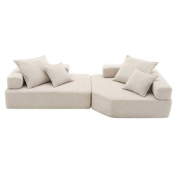 103.5 in. Square Arm Fabric Rectangle Sofa with Free Combination in Beige (2-Pieces)
