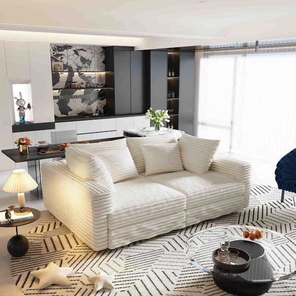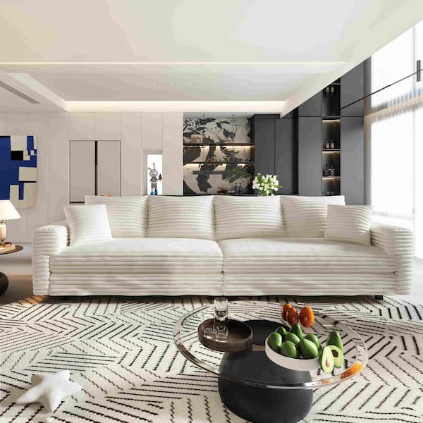 102.4 in. Square Arm Corduroy Rectangle Sectional Sofa in Beige/White (Seats 4)