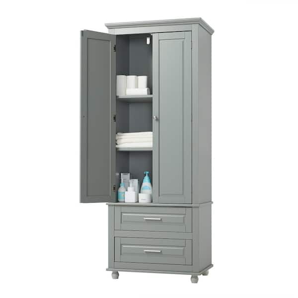 15.70 in. W x 24.00 in. D x 62.50 in. H Gray Tall Storage Linen Cabinet with 2 Drawers for Bathroom, Office