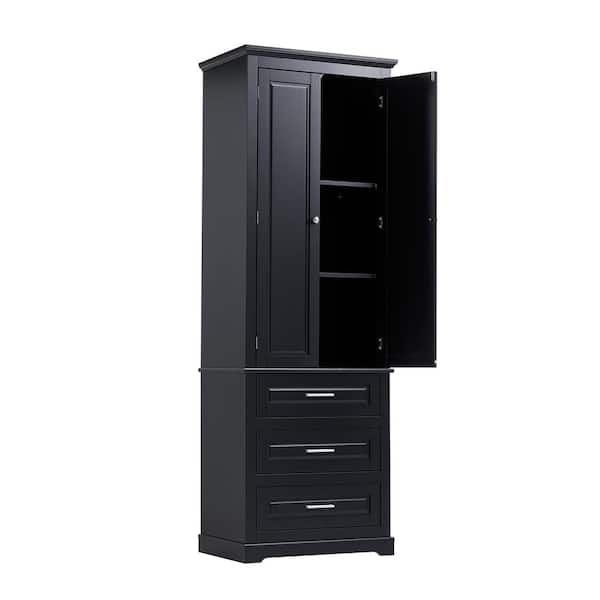 15.70 in. W x 24.00 in. D x 70.00 in. H Black Tall Storage Linen Cabinet with 3 Drawers for Bathroom, Office