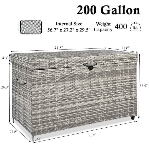 200 gal. Gray Wicker Deck Box, All-Weather Outdoor Storage Box