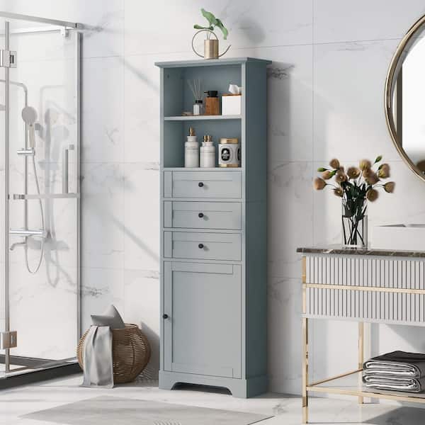 22 in. W x 10 in. D x 68.30 in. H Gray Tall Storage Linen Cabinet with 3-Drawers and Adjustable Shelves