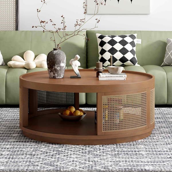 37.1 in. Brown Round MDF Coffee Table with