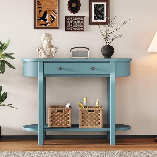 40 in. Turquoise Green Oval Wood Console Table Entryway Table
