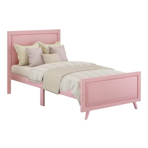 42.30 in.W Pink Twin Wood Platform Bed Mattress Foundation with Headboard and Wood Slat Support