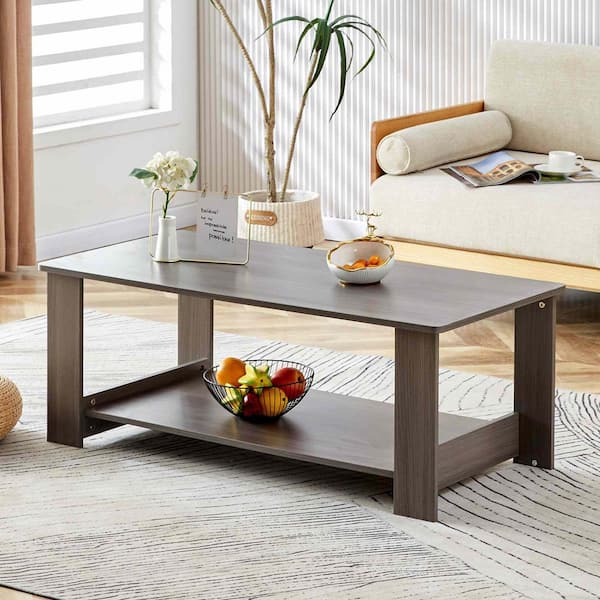 43.3 in. Gray Rectangle Wood Coffee Table with Finished, Shelves