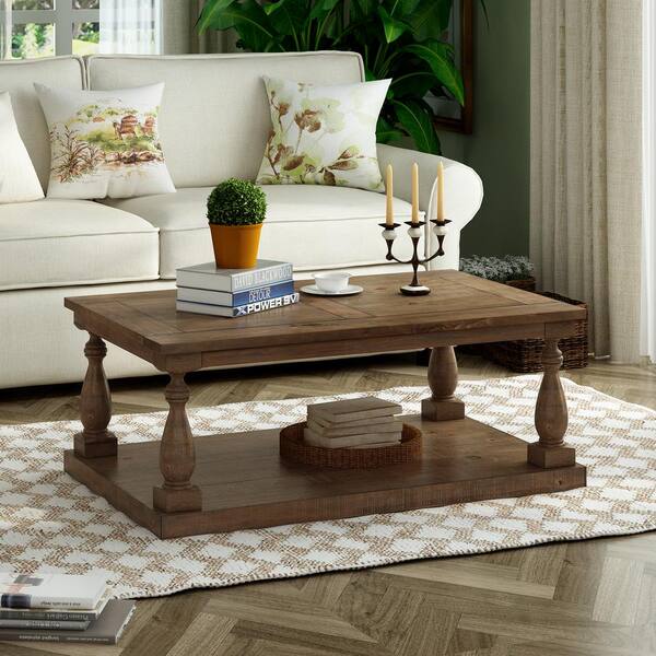 45 in. Walnut Rectangle Solid Wood Top Coffee Table with Storage