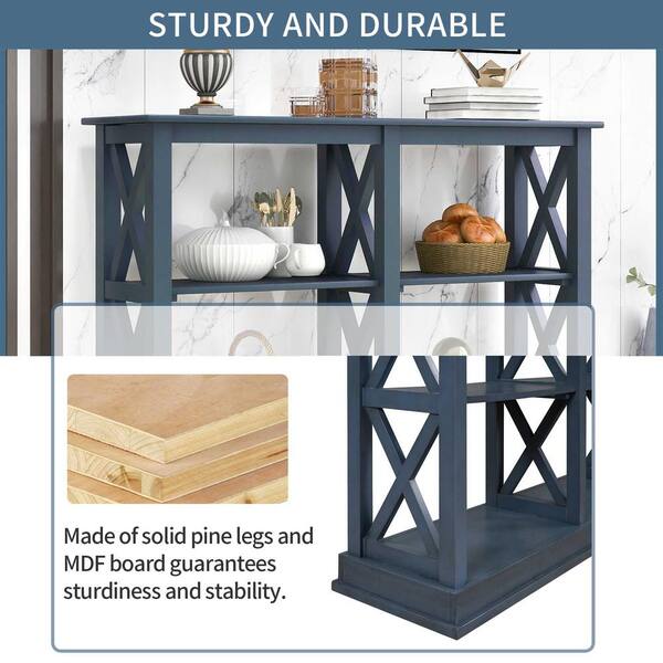 46.5 in. Navy Blue Rectangle Wood Console Table with 3-Tier Open Storage Spaces for Living Room