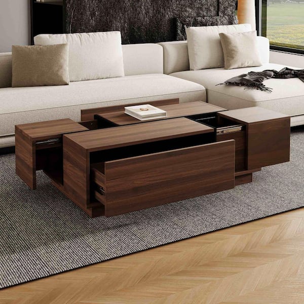 47.2 in. Walnut Rectangle MDF Coffee Table with Storage
