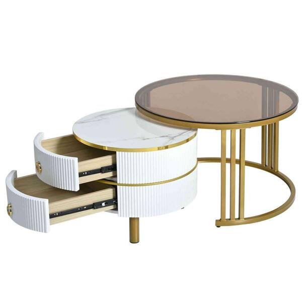 47.96 in. Golden/White Round MDF Coffee Table with 2 Drawers and Stackable Feature