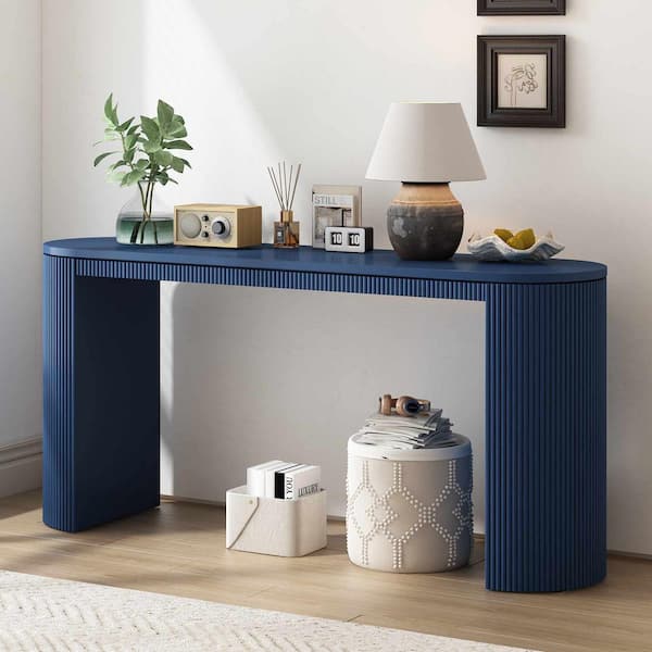 59.2 in. Navy Rectangle Wood Console Table with Unique Vertical Stripe Design for Living Room, Study and Entrance
